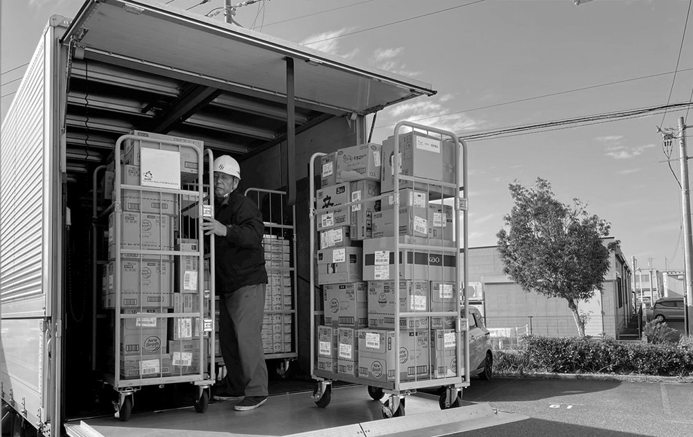 医薬品の配送では、決められた時間・ルートを守り、ドラッグストアなどへ丁寧にお届けしています。