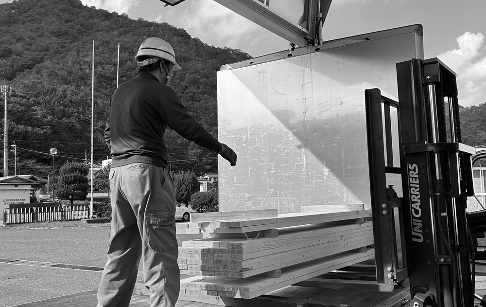 防府市を中心に九州(鞍手)エリアまで、住宅用建築資材の配送を行っています。